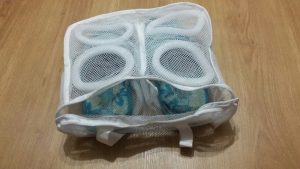 came 1 month. monitored. normal quality, like all mesh wash. probably will include running shoes women, men's but barely.