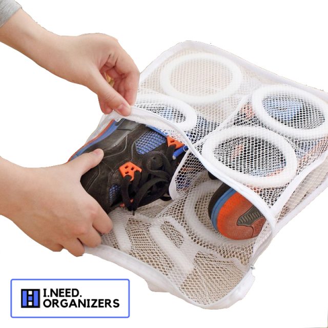 Washing has not yet tried, but the idea is excellent. You can dry in the same organizer. Women's autumn shoes Russian size 40 climbed. There is a partition in the middle. The quality is very good. I'm happy with the order.