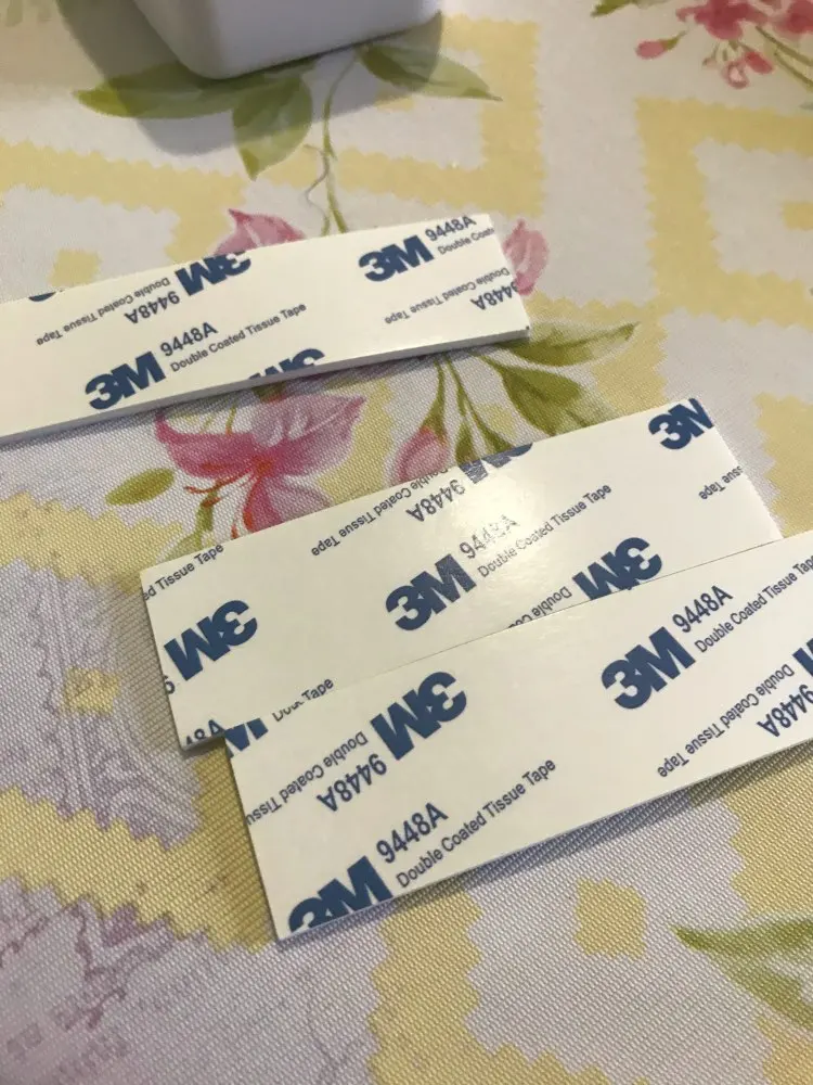 - Remove the protective backing from the tape strips.