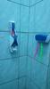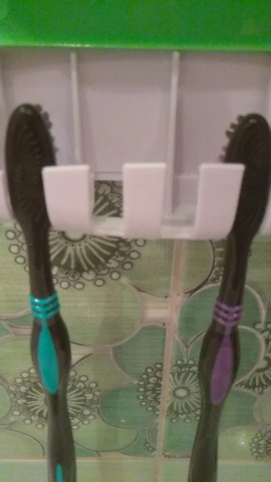 This toothbrush holder and toothpaste dispenser can be attached using double-sided tapes or can be screwed in place. For best results attach using screws and adhesives.