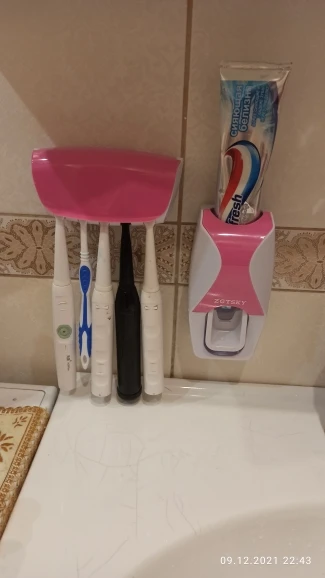 This wall mounted toothbrush and toothpaste holder stores your toothbrushes and toothpaste. The toothbrush holder holds up to 5 narrow neck toothbrushes and comes with a cover keeping it dry and dust free. Meanwhile, the toothpaste dispenser has a vacuum extrusion pump that consistently delivers a nice amount of toothpaste every time. The vacuum pump eliminates any waste and mess and does not need any batteries to operate. It fits standard/normal sized toothpaste tubes. You can use this in your bathroom to keep counters and sink clutter free. Alternatively, you can also use this in the kitchen.